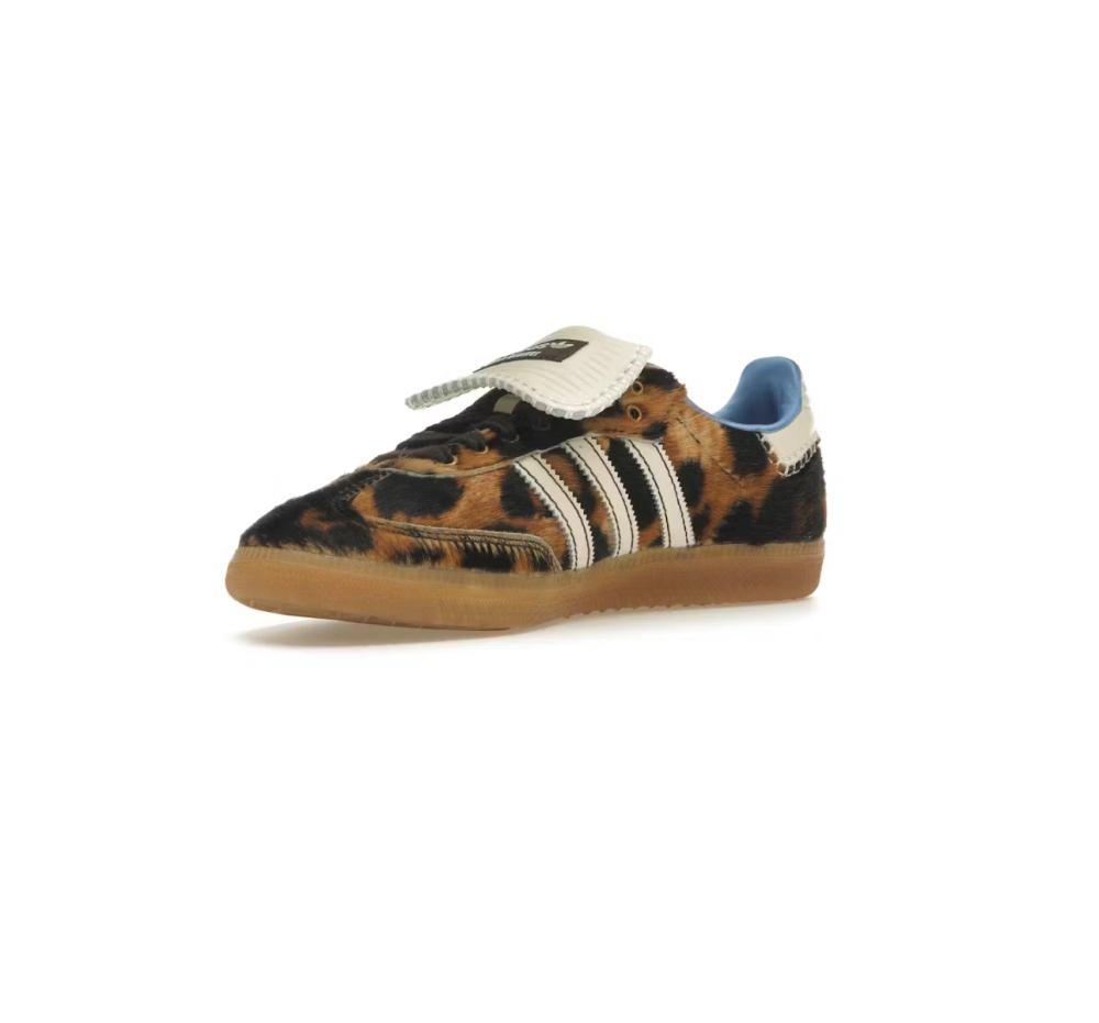 - تميز أحذية Samba بتصميمها البسيط والأنيق الذي يتضمن الأشرطة الجانبية الجلدية المميزة (Three Stripes)، بالإضافة إلى الشعار التقليدي لأديداس.